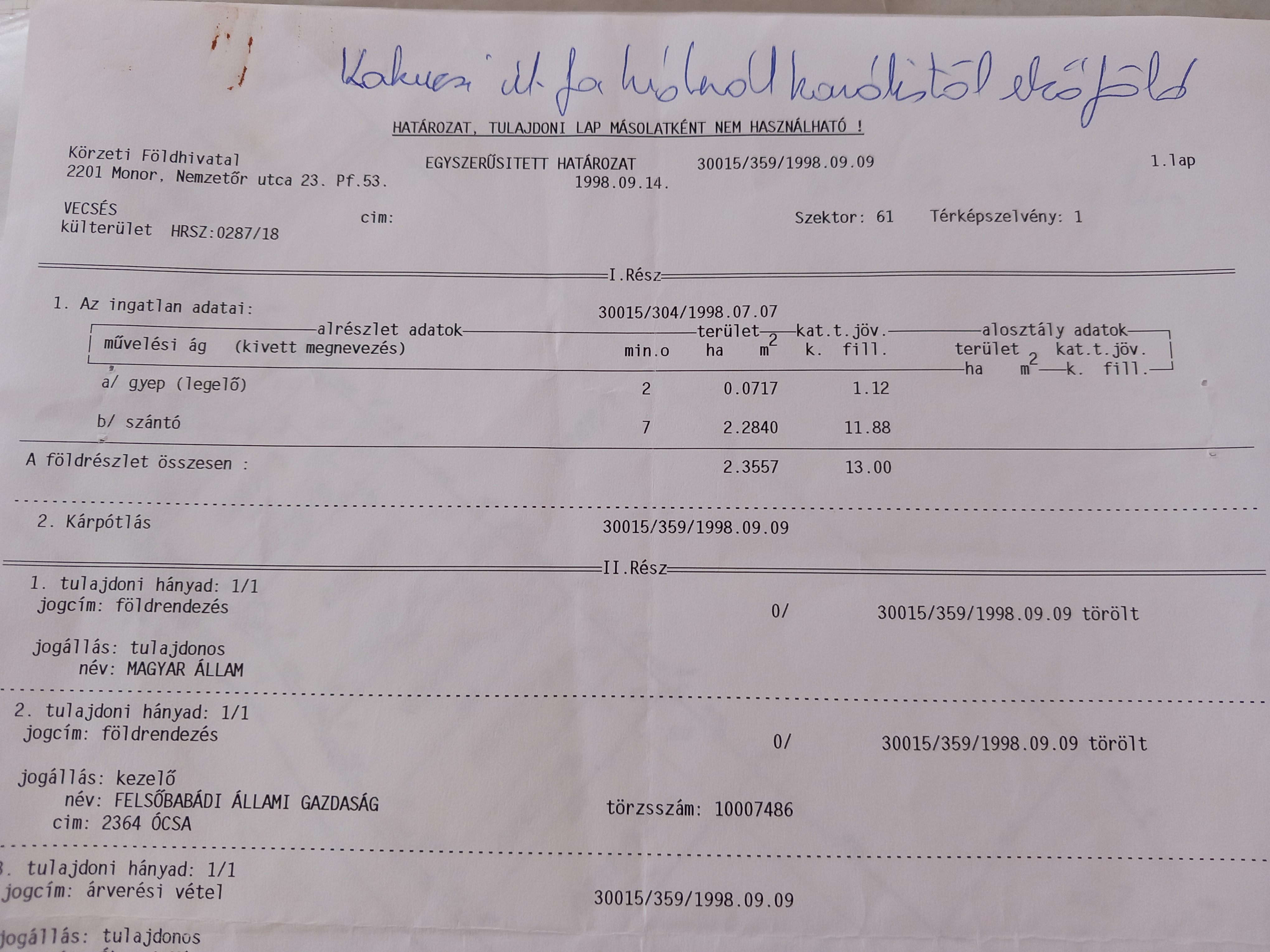 Eladó Vecsésen 0287/18 hrsz-ú rét legelő művelési ágú mezőgazdasági terület közel a városhoz, kanális mellett Kakucsi útnál. 22840m2