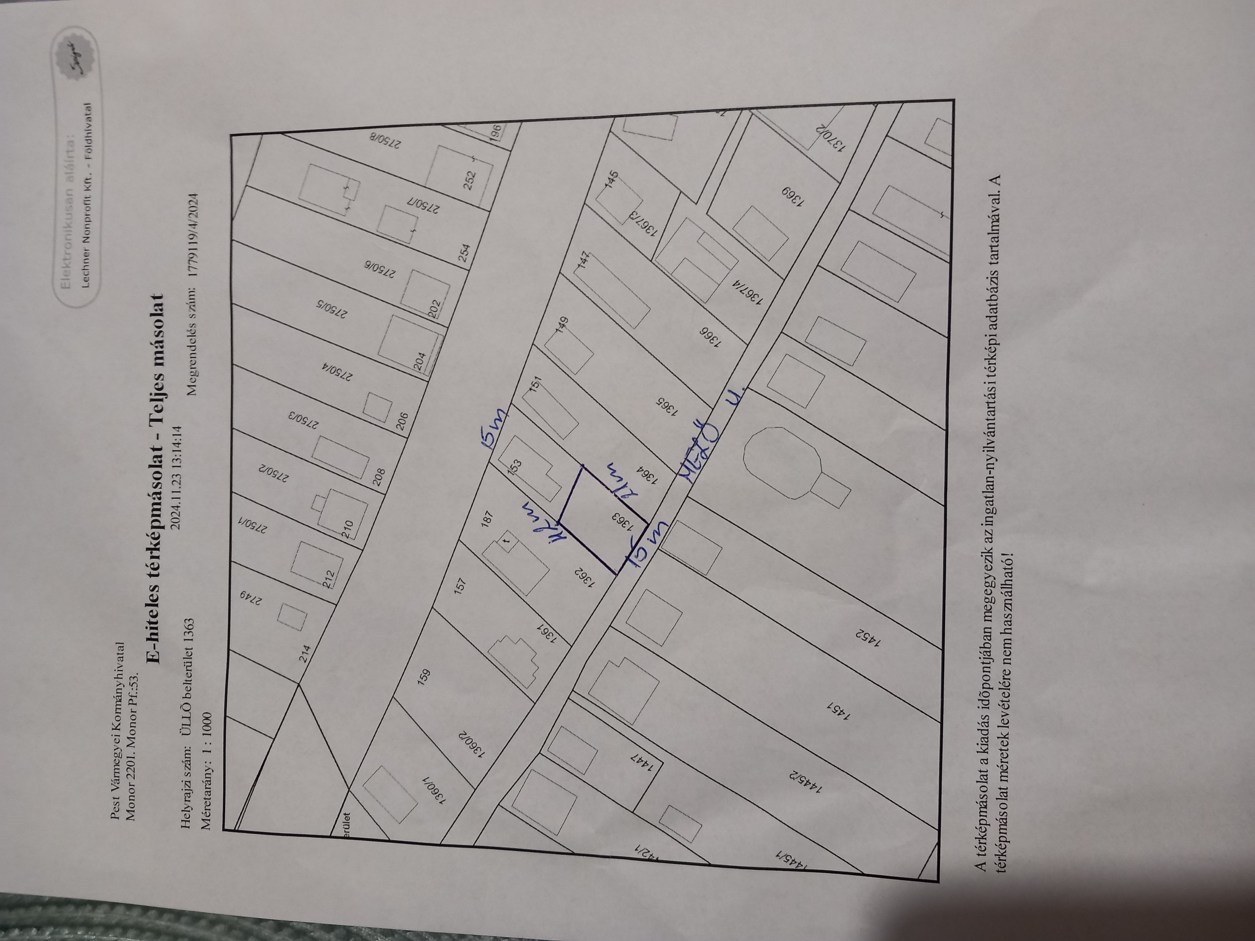 Üllő családi házas övezetében közműves építési telek eladó, mérete 320m2. Ügyvédi megosztással különálló családi ház építhető. Külön közművekkel, víz, villany órával csatornával. Beépíthetőség 35% ami kb 110m2-es háznak felel meg. Vegyes építési övezetben helyezkedik el. A telek üres rendezett, azonnal beépíthető. Méretei 15 m széles és 21m hosszú. Hatályos építési szabályzat térképészeti rajz mellékelve. Csendes utcában kedves szomszédokkal. Érdeklődni 36 20 558 5739 Kérésre emailcímre teljes dokumentációt, képeket adatokat megküldök. In der Einfamilienhauszone Üllő steht ein 320 m² großes Baugrundstück mit Anschlüssen zum Verkauf. Ein separates Einfamilienhaus mit Anwaltsabteilung kann gebaut werden. Mit separaten Anschlüssen für Wasser, Strom und Abwasser. Das Baupotenzial beträgt 35 %, was einem Haus von ca. 110 m² entspricht. Das Grundstück liegt in einer gemischten Bauzone. Das Grundstück ist leer, gepflegt und sofort bebaubar. Es ist 15 m breit und 21 m lang. Gültige Bauvorschriften und kartografischer Plan liegen bei. Das Grundstück liegt in einer ruhigen Straße mit netten Nachbarn. Bei Fragen rufen Sie bitte 36 20 558 5739 an. Auf Anfrage sende ich Ihnen gerne vollständige Unterlagen, Bilder und Daten per E-Mail zu. In the Üllő family house zone, a building plot with utilities is for sale, size 320m2. A separate family house can be built with a lawyer's division. With separate utilities, water, electricity and sewer. Build-in potential 35%, which corresponds to a house of about 110m2. Located in a mixed construction zone. The plot is empty, tidy, ready to build on immediately. Its dimensions are 15 m wide and 21m long. Valid building regulations and cartographic drawing attached. In a quiet street with nice neighbors. For inquiries, call 36 20 558 5739. I will send complete documentation, pictures and data to your email address upon request.
