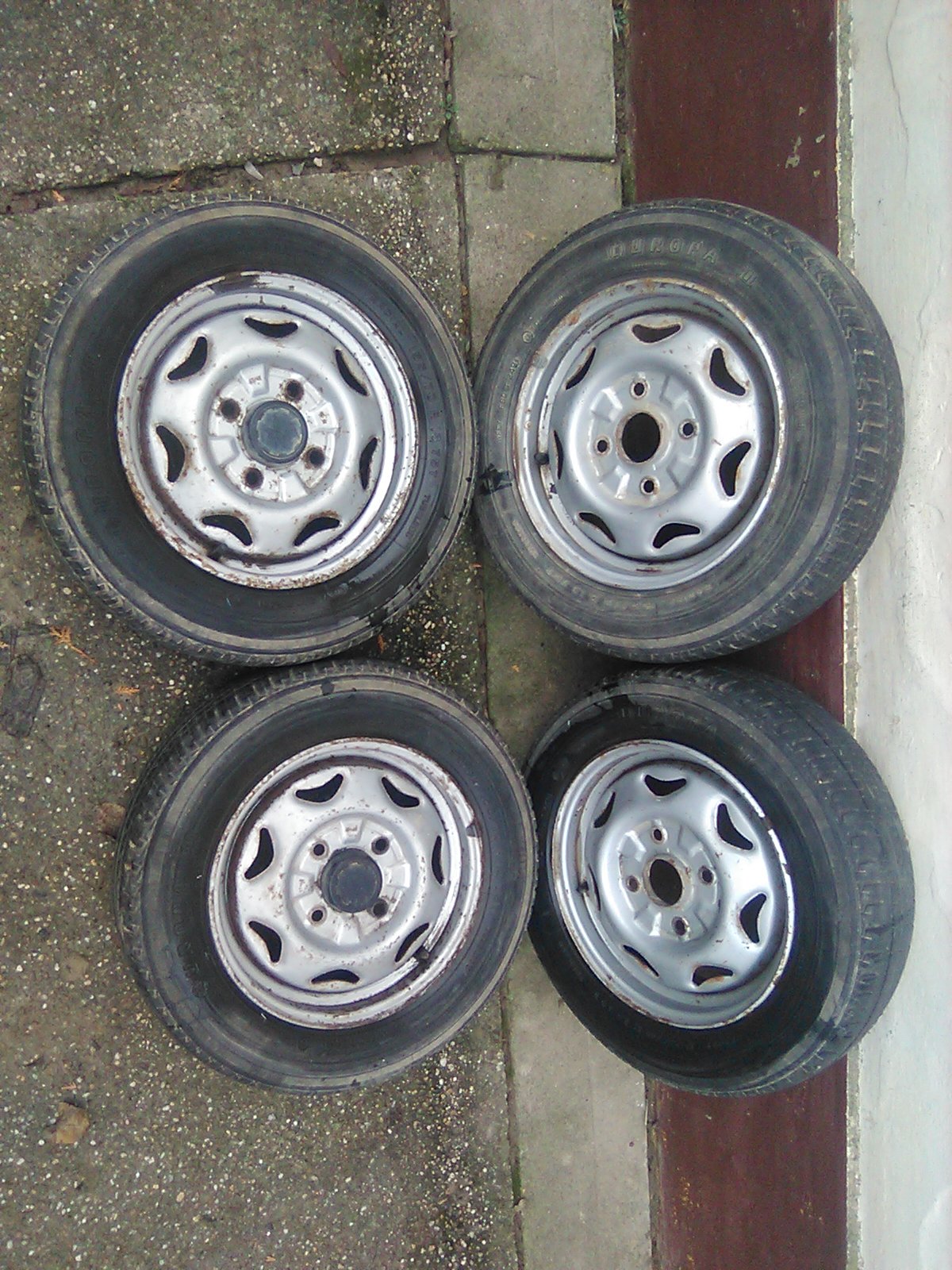 A képen látható 155/70-es gumik felnivel eladók.A 4 db europa II-es gumi:7000 ft/db áron,az 1 db 155/70-es mishelin gumi 10000 ft-ért eladó.Csere nem érdekel.