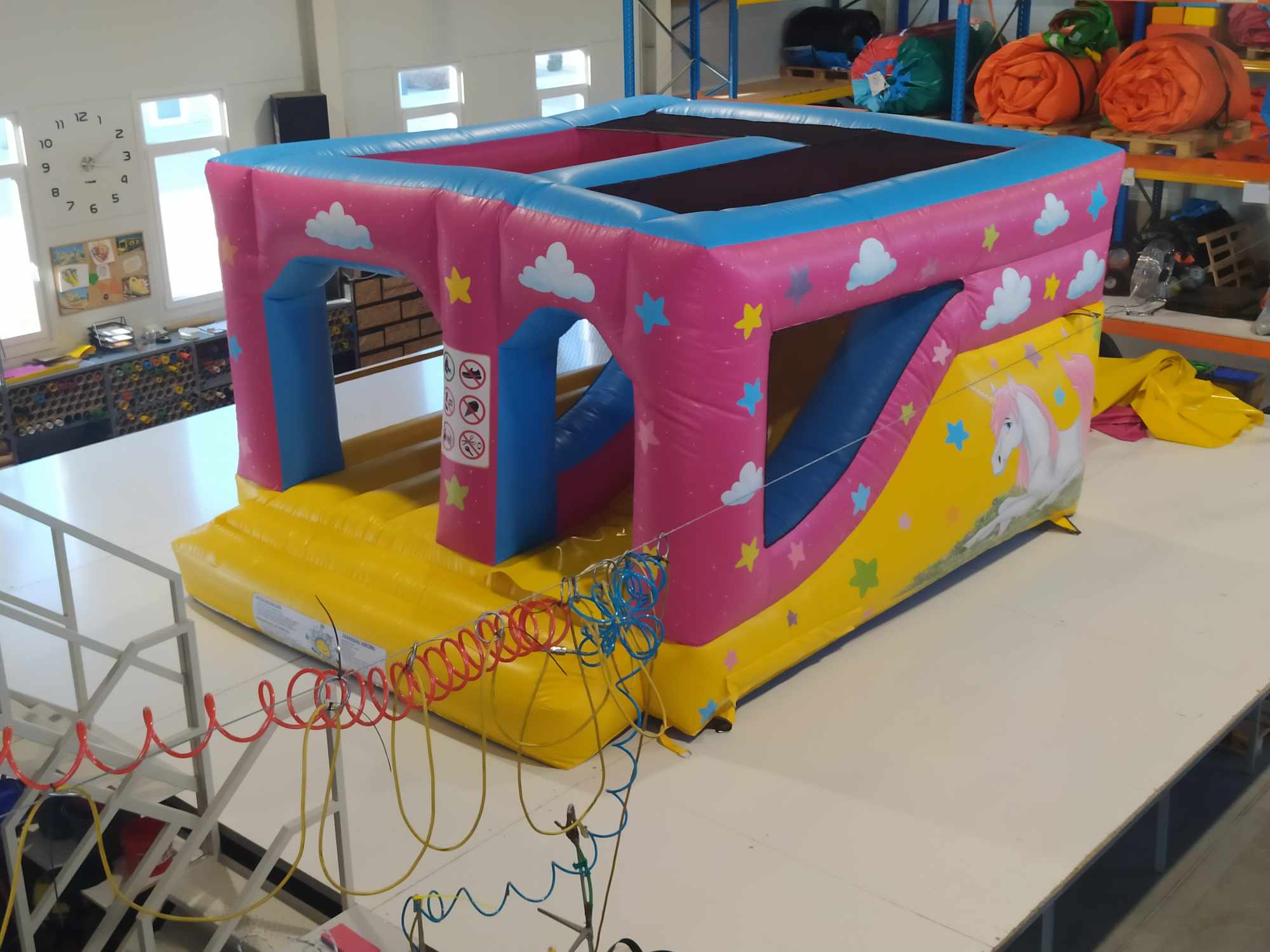 Eladó Unikornis Csúszdás Ugráló Gyártási év: 2024.01. Mérete: 4m x 4,7m x 2,5m Állapota: kitűnő állapotban, angol ponyvából készült Ára: 799.000 Ft+ÁFA Tartozékok: befúvó motor, rögzítő vascövekek, műszaki vizsga, (érvényessége: 2027.11.27.), javító készlet Átvételi időpont: 2025.10.20.tól
