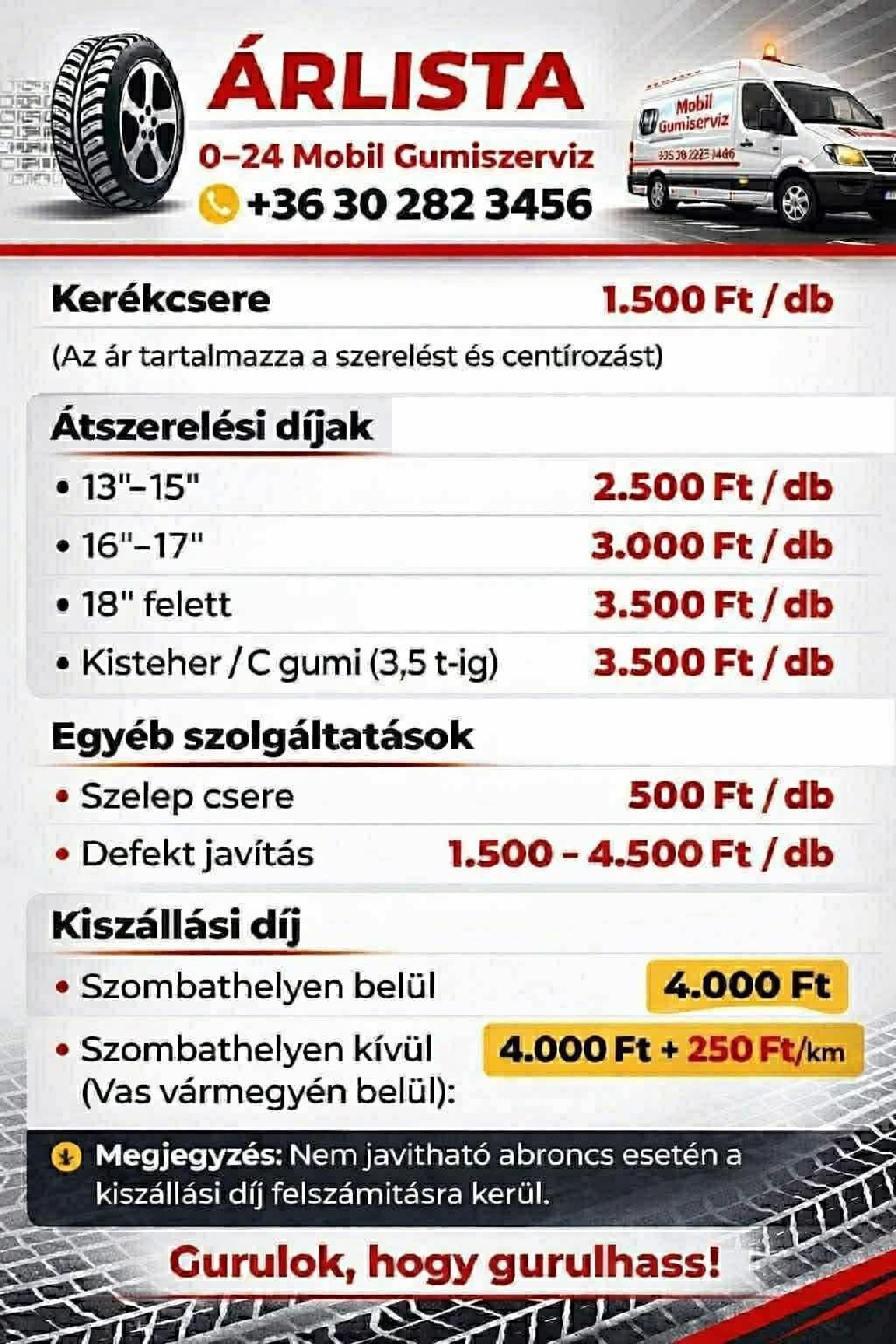 Mobilgumiszerviz Szombathely és Vas vármegye 0-24 h